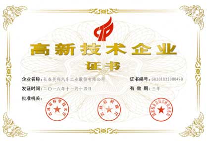 高新技術企業(yè)證書